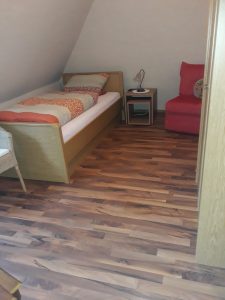 Wir bieten Ihnen eine Wohnung im Obergeschoß unseres Einfamilienhauses. Die Wohnung verfügt über einen separaten Zugang und verfügt über zwei Schlafzimmer, separates Wohnzimmer, Küche, Duschbad und Terrasse mit Sitzgelegenheit.